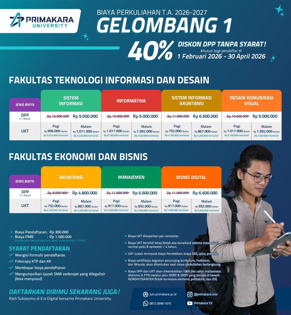Kalau kamu serius jadi pengusaha digital, Primakara adalah tempatnya. Kamu akan belajar bangun bisnis online, branding, dan strategi digital langsung di ekosistem pengusaha yang terhubung dengan HIPMI, JCI, KADIN, hingga menteri-menteri terkait.